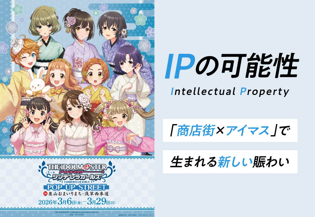 2026年3月、浅草の奥山おまいりまち商店街・浅草西参道商店街にて、『アイドルマスター シンデレラガールズ』とのコラボイベントを実施しました。本企画は、3社*による共同プロジェクトとして「商店街の活性化」を目的に、IPを絡めて実現した取り組みです。